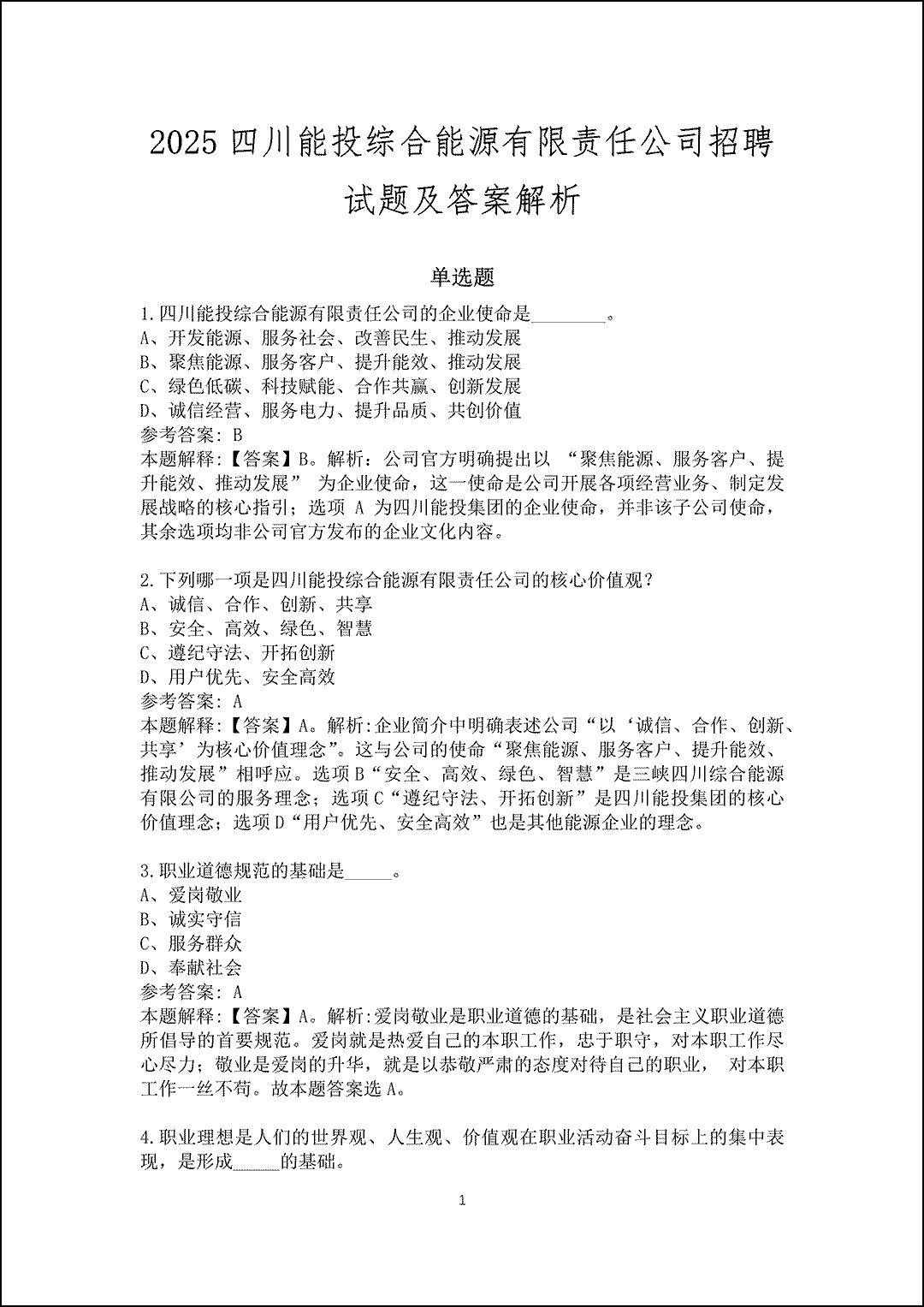 注意:此卷为四川能投综合能源唯一真题卷,其他资料网站均为模拟卷