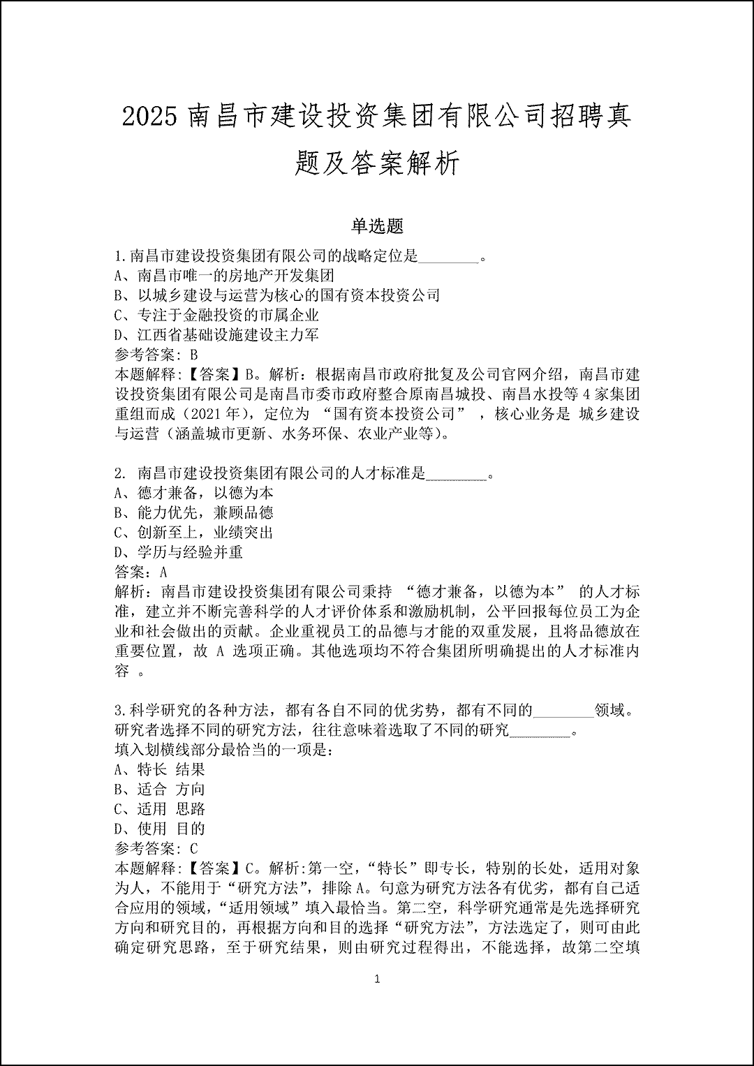 注意:此卷为南昌市建设投资集团有限公司唯一真题卷,其他资料网站均为模拟卷