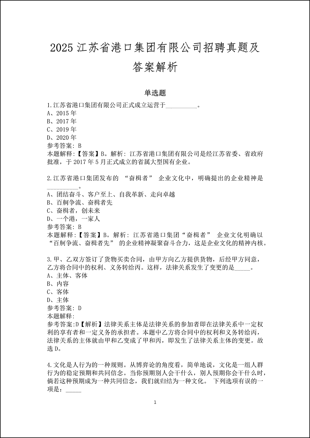 2024江苏省港口集团有限公司校园招聘试题及答案解析(综合测试)单选题1.我国河流众多海岸线漫长.关于内河航道的表述不正确的是:_____ A、京杭运河航道上的港口城市有苏州、杭州B、松花江航道只能季节性通航C、珠江航道被称为“黄金水道”D、长江航道干流长、支流多、江宽水深 参考答案: C 本题解释:参考答案:C【解析】长江航道被称为“黄金水道”。故本题答案选C。