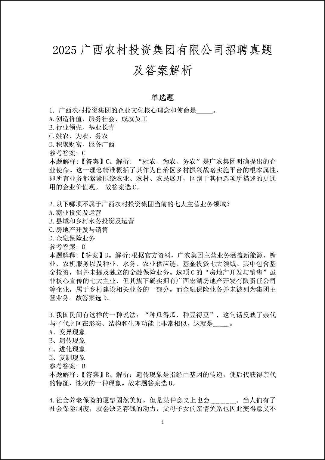 注意:此卷为广西农村投资集团有限公司唯一真题卷,其他资料网站均为模拟卷