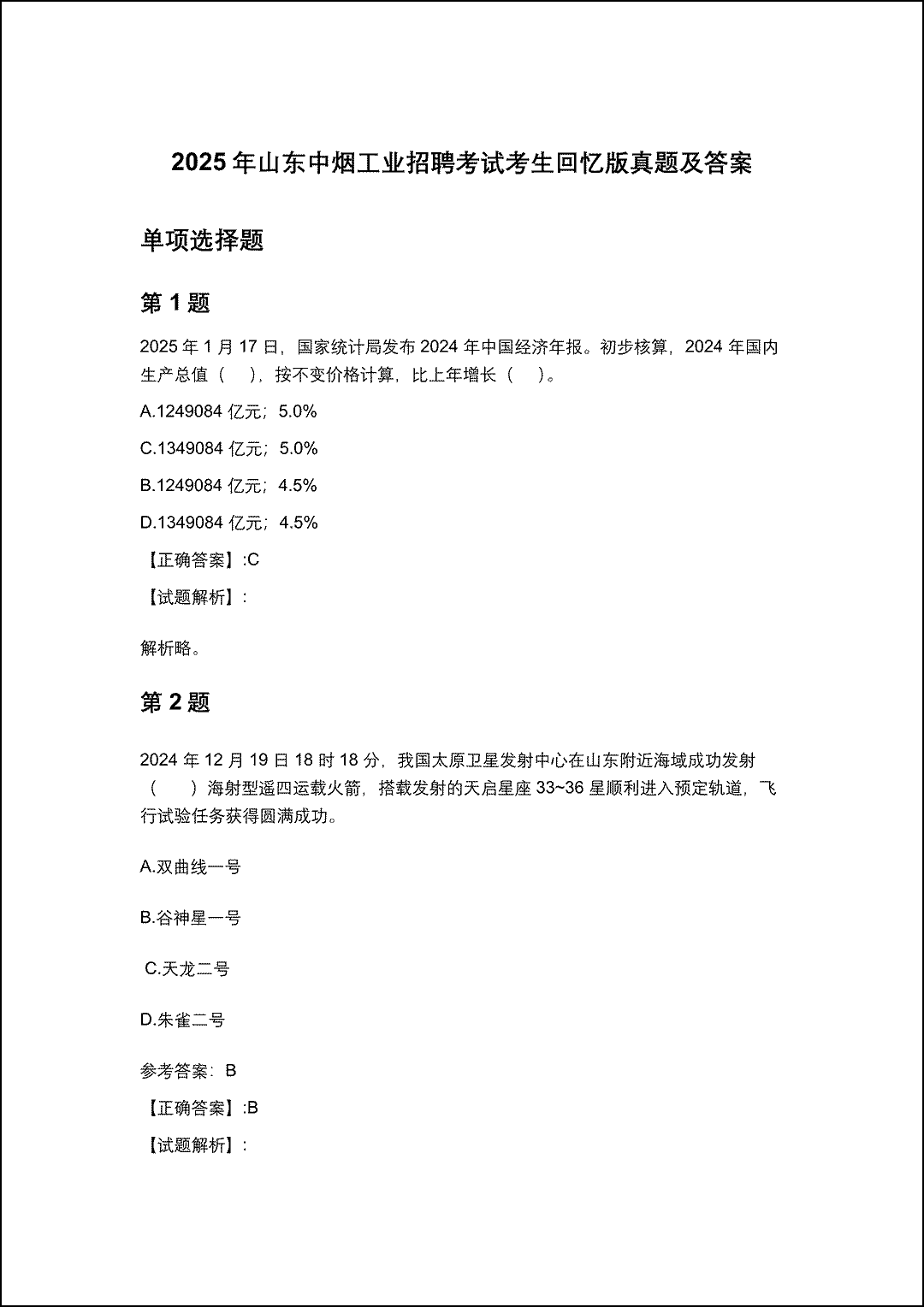 资料包含山东中烟工业2020-2025年真题、题型备考资料、企业知识、专业知识合集、面试真题等,非常详细