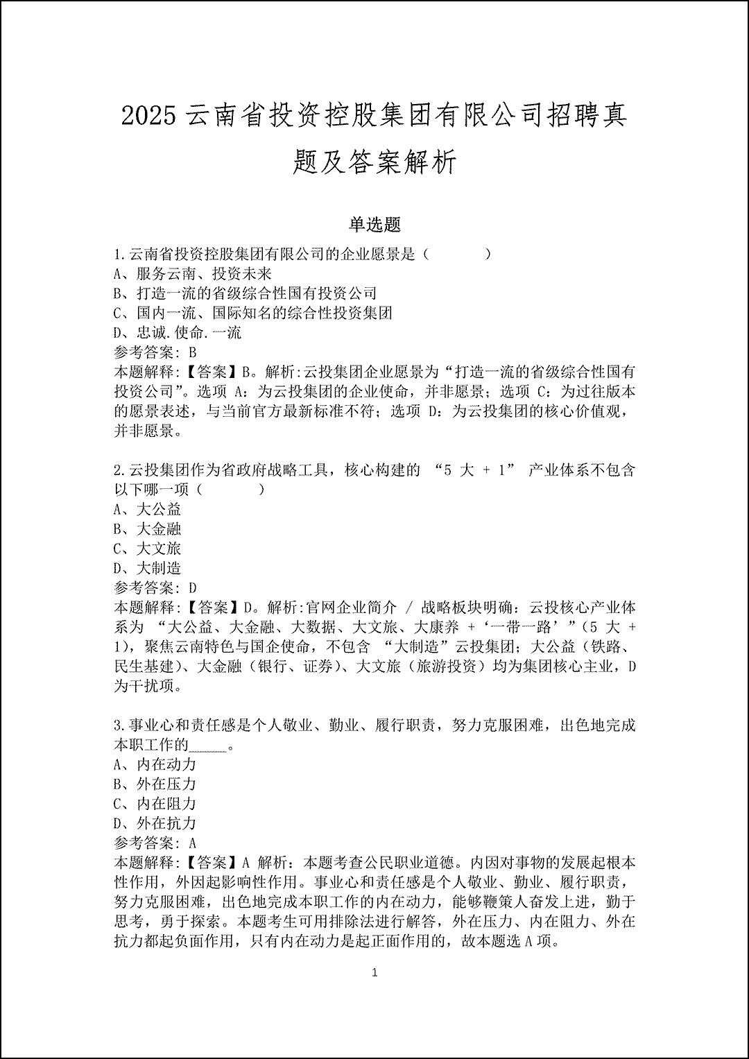 注意:此卷为云南省投资控股集团唯一真题卷,其他资料网站均为模拟卷