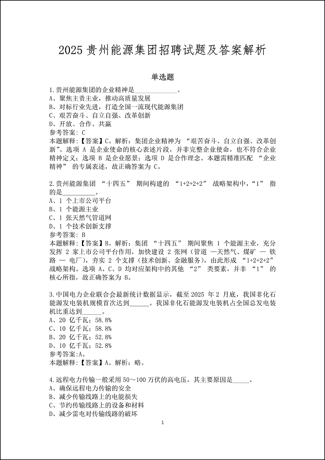 注意:此卷为贵州能源集团唯一真题卷,其他资料网站均为模拟卷
