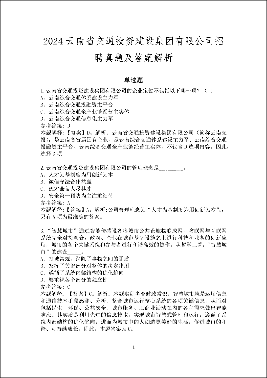 2022云南省交通投资建设集团有限公司招聘试题及答案解析一、单选题1.我国少数民族分布最多的省级行政单位是_____。 A、四川B、贵州C、新疆D、云南 参考答案: D 本题解释:【答案】D。解析:我国拥有少数民族种数最多的省级行政单位是云南。故本题答案选D。