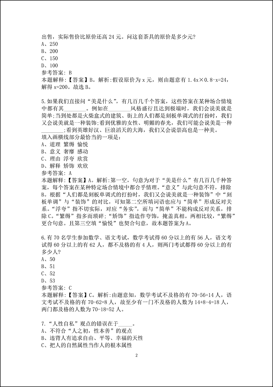 2023广西交通投资集团有限公司招聘试题及答案解析单选题1.马克思主义政治经济学的研究对象是_____。 A、生产力和生产关系的对立统一即生产方式B、社会生产关系及其发展规律C、物质资料的生产过程D、社会生产力及其发展规律 参考答案: B 本题解释:【答案】B。解析:A项的范围过大,生产方式还包含了生产力;C项是政治经济学研究的起点;D项是经济学的另一个分支——生产力经济学研究的对象。